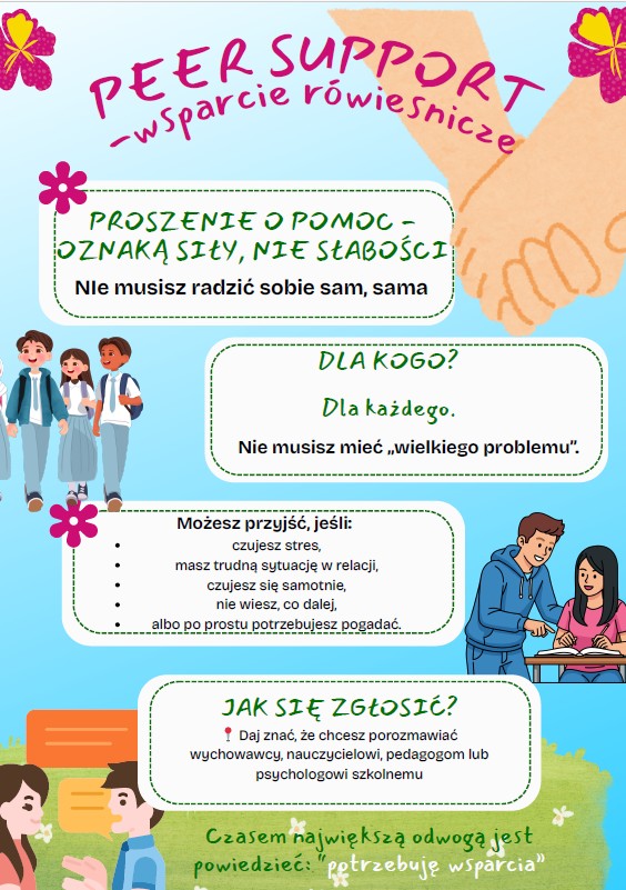 Czasem każdy z nas ma gorszy dzień, problem w szkole, konflikt ze znajomymi albo po prostu potrzebuje z kimś pogadać. Właśnie po to są schoolworkerzy. To uczniowie, którzy potrafią wysłuchać, wesprzeć i pomóc znaleźć rozwiązanie.