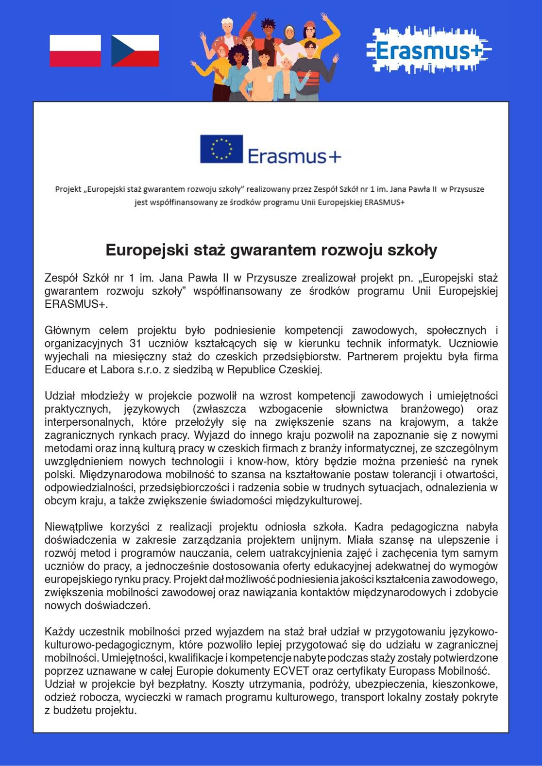 „Uczniowie ZS nr 1 w Przysusze na międzynarodowej drodze rozwoju zawodowego”